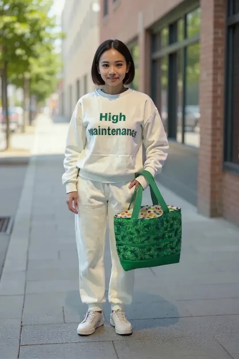 Featuring a vibrant green leaf pattern on durable, high-quality fabric, this tote brings nature-inspired charm to any outfit. The spacious interior easily holds your essentials — from laptops and books to groceries and travel must-haves — while double zippered pockets and reinforced straps keep everything secure and comfortable to carry.
