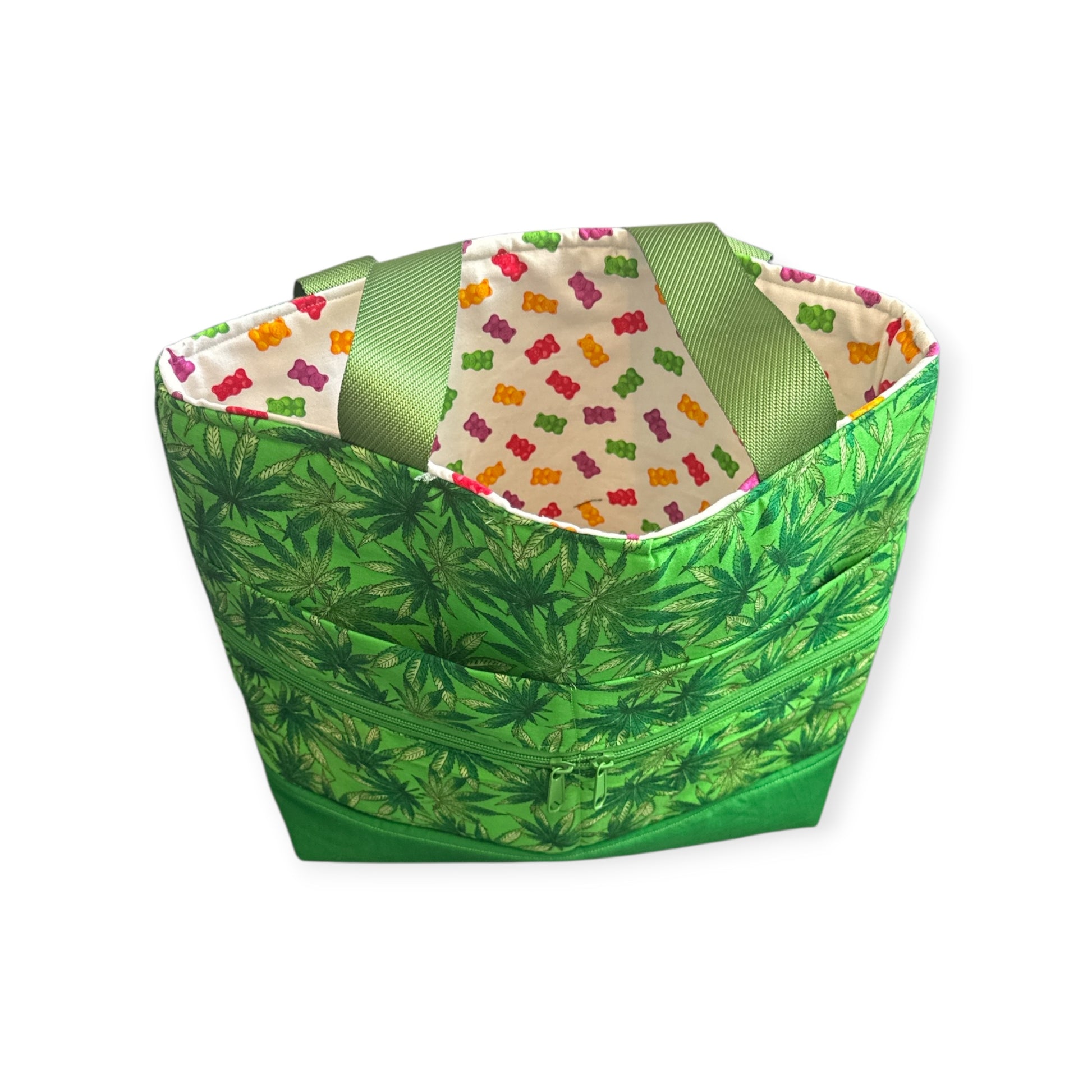 handmade tote bag, green leaf tote, eco friendly bag, botanical tote, fabric shoulder bag, reusable shopping bag, leaf print purse, handmade gift, large travel tote, sustainable fashion, eco tote bag, nature inspired tote, handmade shoulder bag, reusable tote, stylish fabric bag, handmade eco bag, boho tote bag, zippered tote, everyday carry bag, handmade accessory