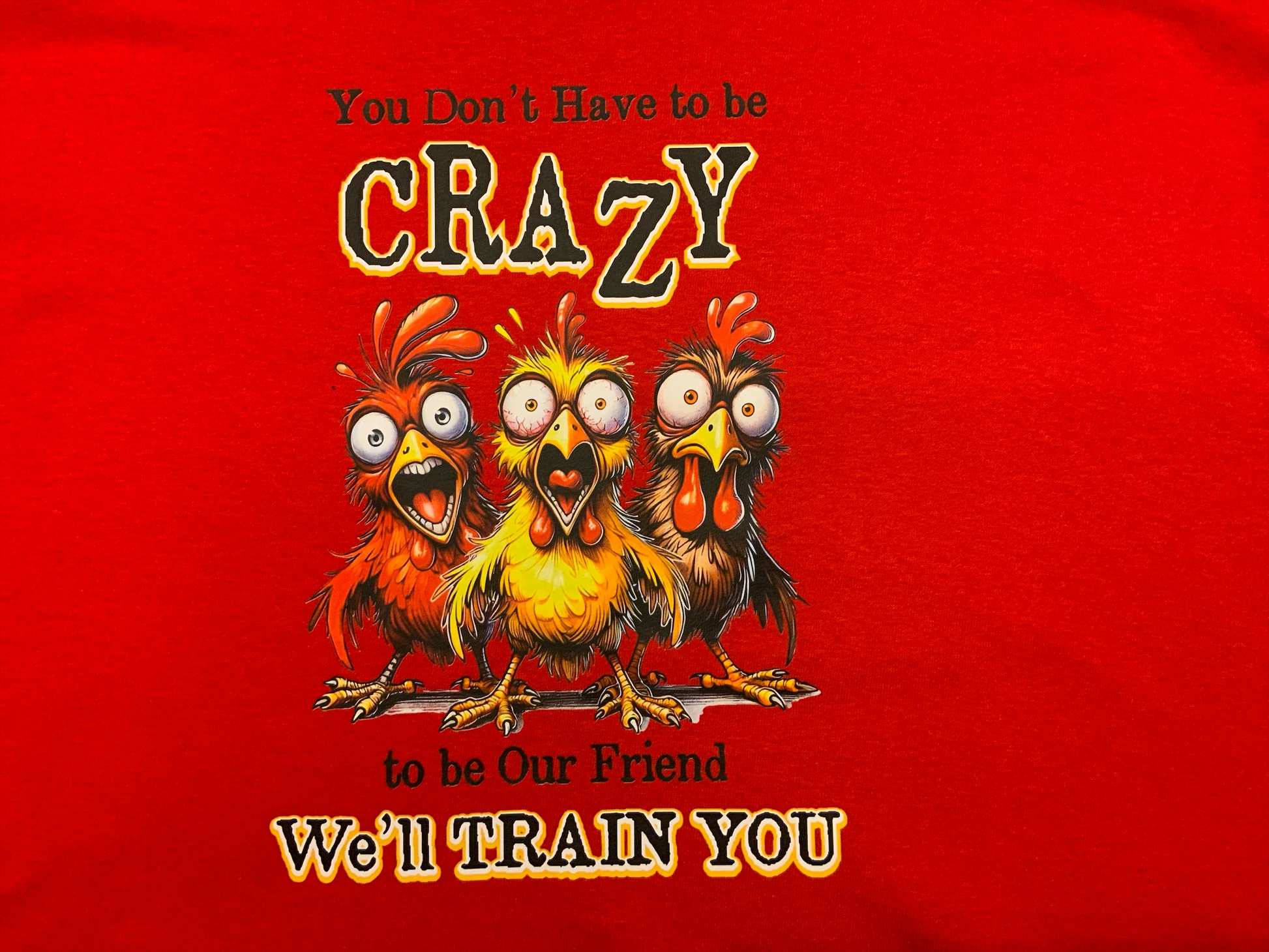 Funny Crazy Chicken Friends Long Sleeve Shirt – You Don’t Have to Be Crazy We’ll Train You – Hilarious Farm Animal Shirt for Friends & Coworkers, Gift for Chicken Lovers